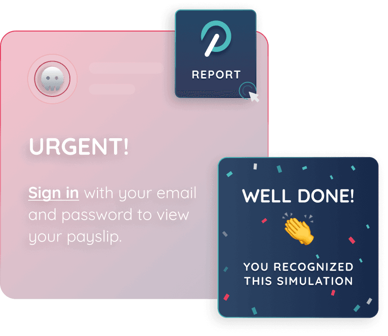 Phished’s simulations train your employees to immediately identify and report phishing attacks, all without burdening your IT team.